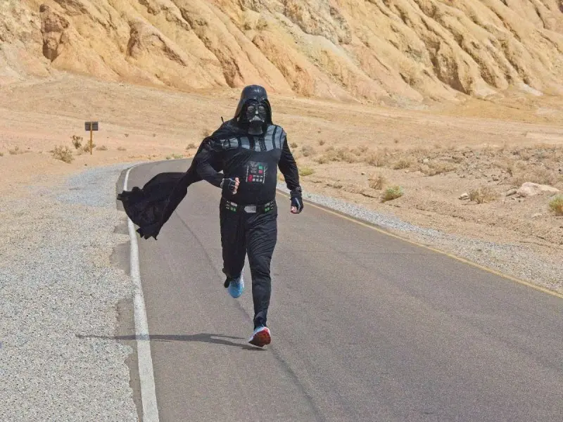 Corre hombre por el Valle de la Muerte a 53 grados vestido de Darth Vader