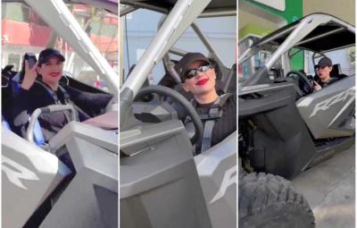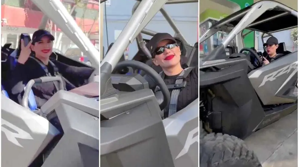 La alcaldesa fue captada en el polémico vehículo. En el video se puede observar a Cuevas conduciendo el RZR e incluso cargando gasolina, lo cual ha generado aún más críticas, ya que se le ve utilizando su teléfono celular junto a la bomba de combustible.