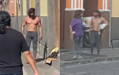 Luis Enrique, conocido como el 'vagabundo fitness' captó la atención del público al pasear por las calles de Puebla sin camisa.