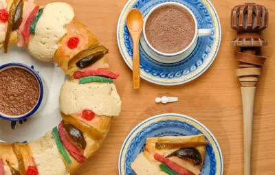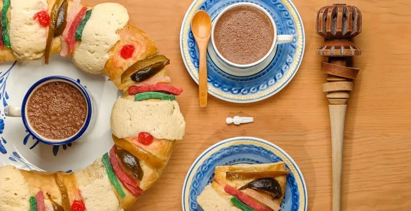 La famosa rosca, decorada con frutos, tiene un significado religioso muy importante. Se parte en conmemoración de la llegada de los Reyes Magos, quienes montados en un camello, un caballo y un elefante, viajaron desde el Oriente hasta Jerusalén guiados por una estrella.