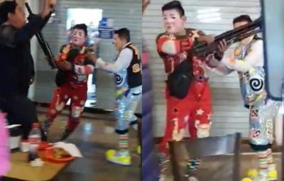 Empleados municipales pelean con payasos en Puebla... ¡como en Malcolm!