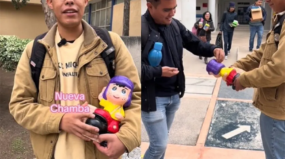 Un joven emprendió una nueva chamba usando su teléfono celular y una alcancía del Chavo del 8 cobrando por dar la hora a sus compañeros en la universidad.