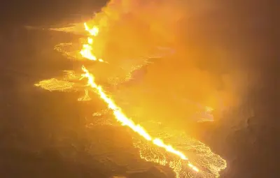 Espectacular erupción volcánica en Islandia ilumina el cielo de un pueblo pesquero.