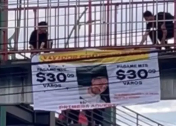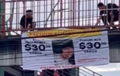 Mandó a hacer varias lonas que colocó en diferentes lugares públicos como cruceros, puentes peatonales y postes.