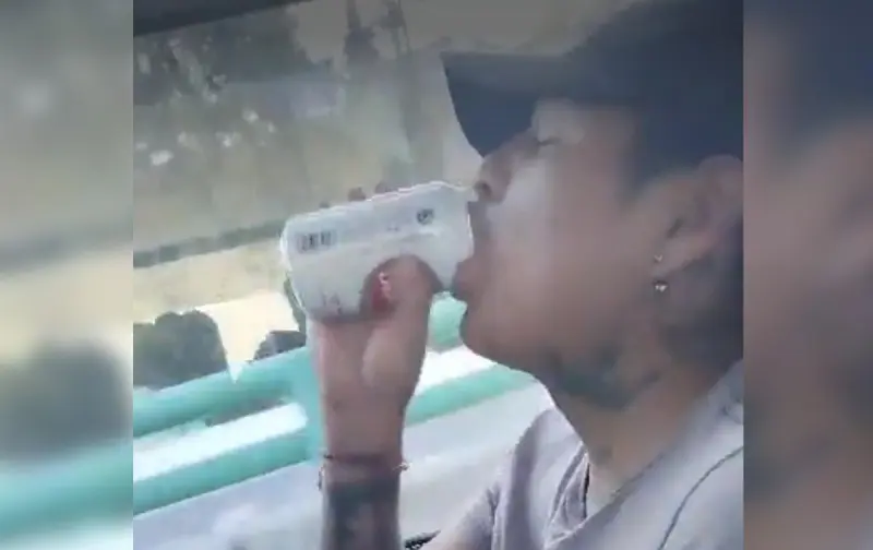 Un hombre fue captado en video por pasajeros del transporte público tocándose indebidamente y tomando alcohol.