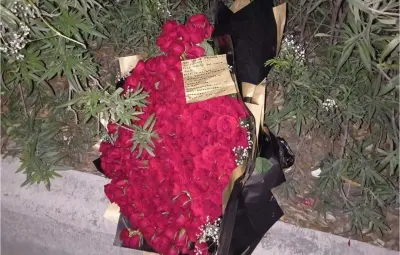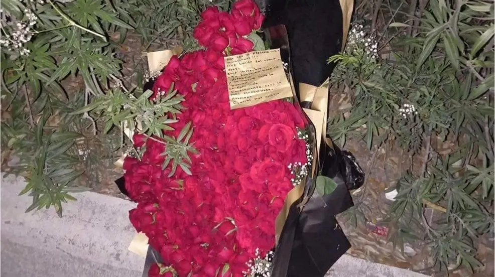 La publicación estaba acompañada de varias fotografías del frondoso ramo de rosas rojas que presuntamente fue abandonado por la mujer en el camellón.