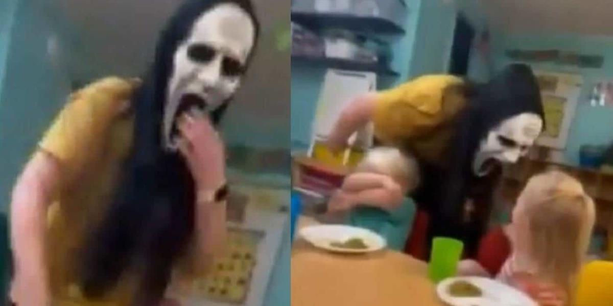 VIDEO: Horroriza trabajadora de guardería a niños con una máscara