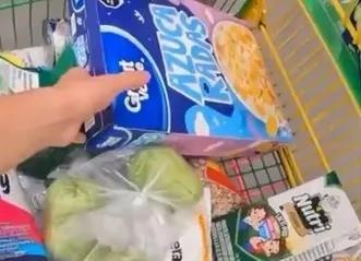En este nuevo clip, se observa a la familia en la caja registradora, pagando varios productos como yogurt, cereal, pañales, artículos de cuidado personal, papel higiénico, arroz, huevos, frutas y verduras.