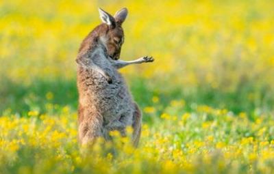 Un canguro en pose de guitarrista fue el ganador del premio la mejor foto cómica de la fauna silvestre.