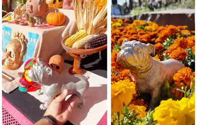 GP México 2025: Honran a Roscoe, mascota de Lewis Hamilton, con altar de Día de Muertos