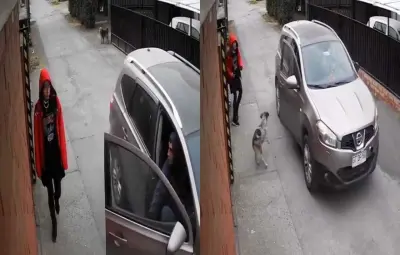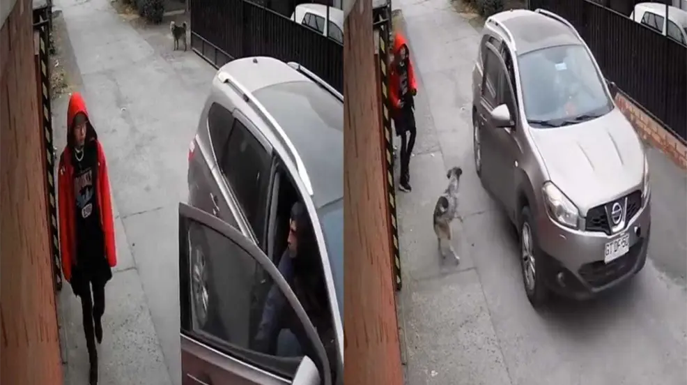 Sin embargo, atrás de la niña, un perro ladra y el hombre cierra la puerta del vehículo y se echa en reversa para alcanzar a la menor, pero en eso, otro perrito llega corriendo y se lanza contra el copiloto, sin parar de ladrar. El auto termina marchándose del lugar mientras el lomito lo persigue.