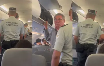 CIUDAD DE MÉXICO.- Un pasajero de la aerolínea Viva Aerobus fue captado en video mientras era obligado por la Guardia Nacional a abandonar un avión debido a la sobreventa de boletos por parte de la empresa.