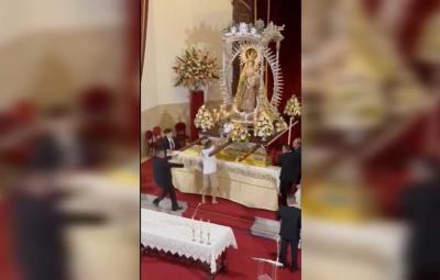 Según el video difundido a través de redes sociales, el suceso se registró durante la celebración de la eucaristía en el santuario ubicado en Los Realejos, Tenerife, dejando a los asistentes atónitos.