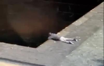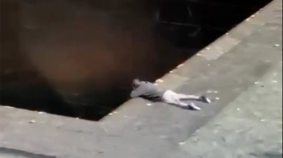 A pesar de sumergirse a una altura aproximada de 45 pies en la piscina, la cual cuenta con solo 18 pulgadas de agua, el hombre logró sobrevivir al salto.