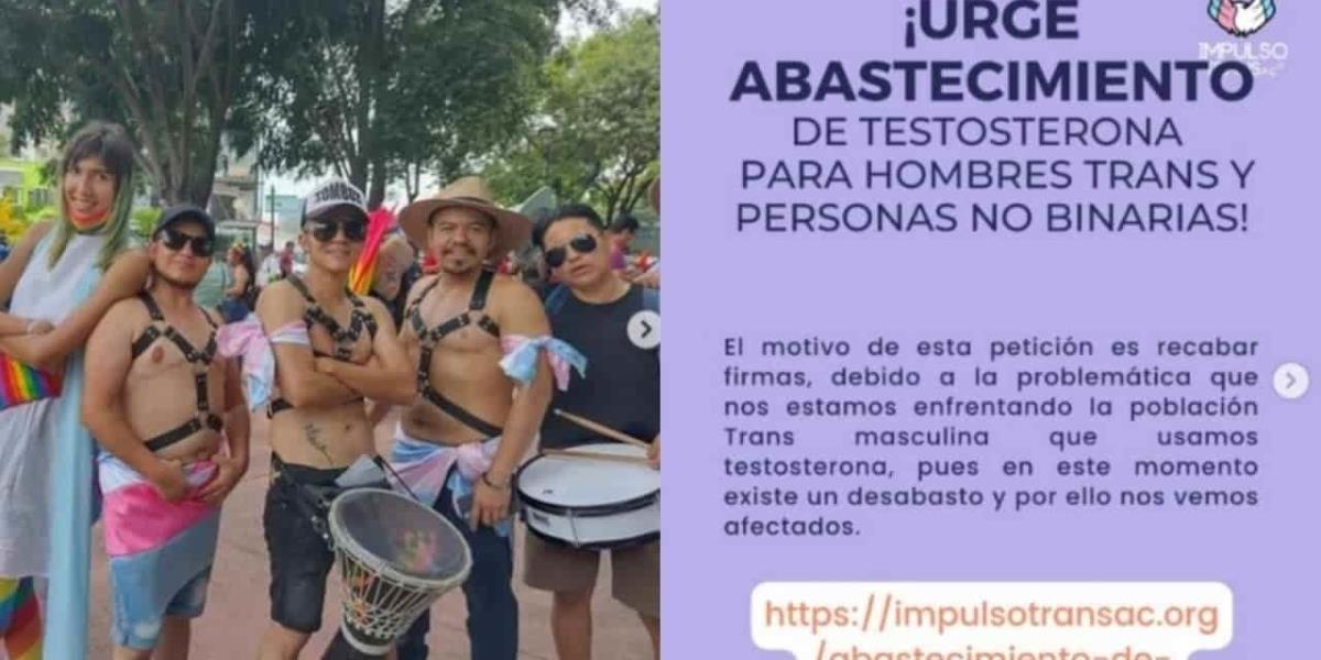 La comunidad hace una petición para recabar firmas debido a la problemática que están enfrentando la población trans msculina que usa testosterona a través de: https://impulsotransac.org/abastecimiento-de-testosterona/