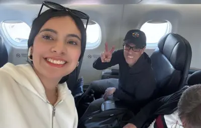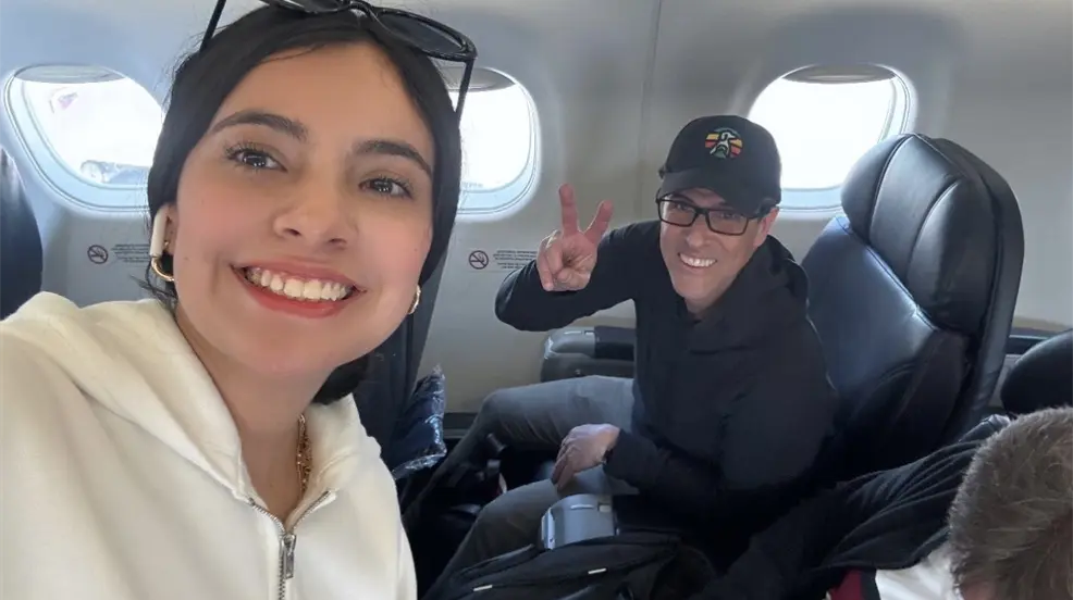 La usuaria de X @sin6n_ compartió una fotografía al lado del famoso, sin embargo, escribió el siguiente mensaje: "Hay un señor en el avión que no deja de pedir fotos y autógrafos, pero no sé quién es, así que le pido foto".