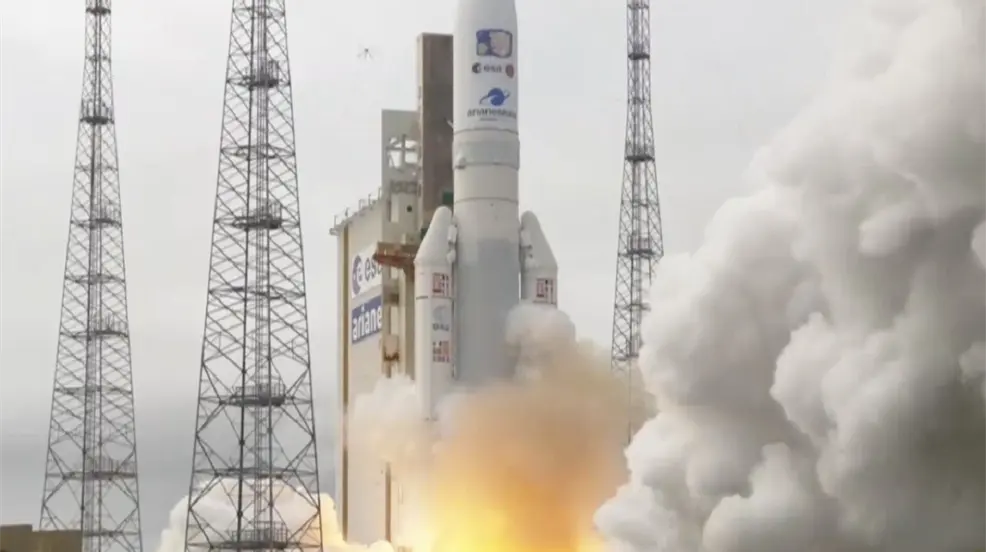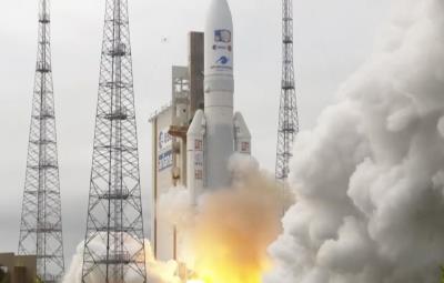 El centro espacial europeo de Kourou lanzó la zonda espacial 'Juice' a bordo de un cohete Ariane 5 a Júpiter; buscará ambientes para formas de vida extraterrestre.
