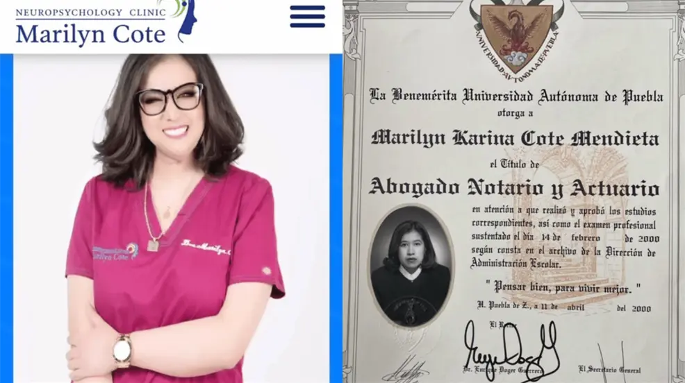 El problema es que Cote Mendieta no tiene la formación médica necesaria para tan delicada labor, como curar la depresión en sólo 8 días como lo ofrece, sino que incurre en una ilegalidad al tener título de abogada por la Benemérita Universidad Autónoma de Puebla.