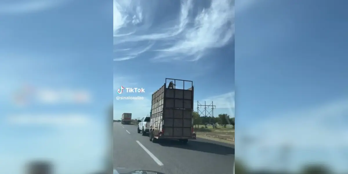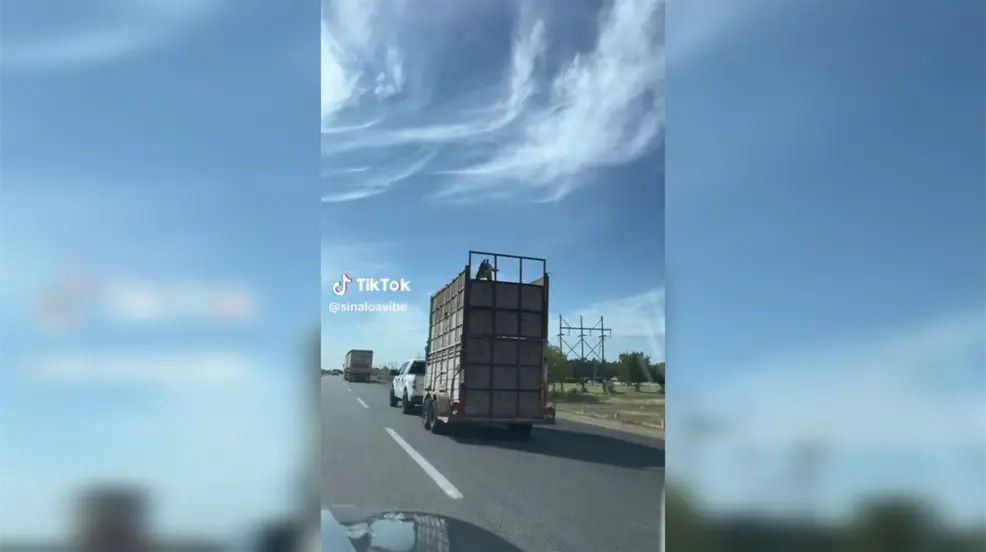 A través de redes sociales se difundió la imagen de una jirafa transportada en una camioneta mientras circulaba en Navojoa, Sonora.
