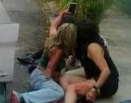 La otra mujer se sienta a su lado, aunque en otras fotos se puede ver cómo una de ellas está llena de manchas de sangre en el rostro, aunque está consciente y el auto completamente volcado, con los cristales deshechos.