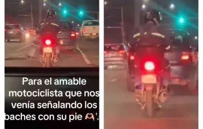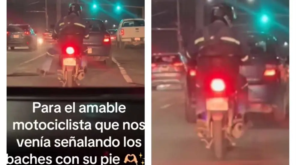 El amable gesto del sujeto se ha vuelto tema de interés, pues el motociclista del video, haciendo una seña con sus pies, indicaba a los automovilistas detrás de él el lugar exacto donde había un bache, así los demás conductores podían sacarle la vuelta y evitar daños a sus autos.