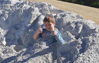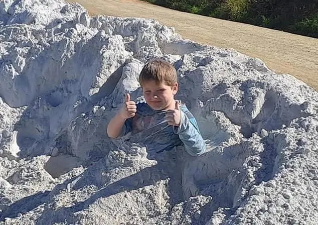 El menor fue fotografiado por sus familiares justo en el momento en el que jugaba en medio de una montaña de polvo, e incluso en la imagen se observa como salda feliz a la cámara.
