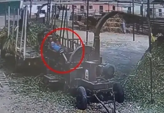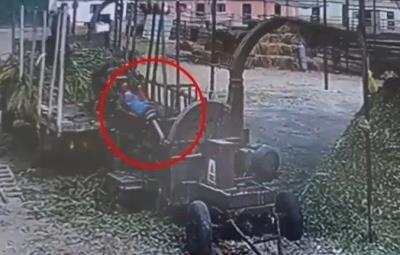 En las imágenes que circulan en redes sociales, se puede ver cómo el hombre pone plantas de maíz en la trituradora, sin embargo, todo apunta que, las mismas plantas lo arrastran hacia los filosos cabezales.