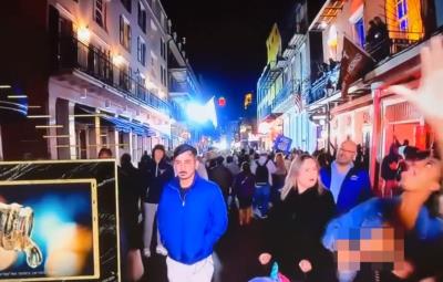 Pero, cuando regresaron con un anuncio publicitario, también mostraron a personas caminando por Bourbon Street, sin darse cuenta que una mujer enseñó sus senos en vivo.