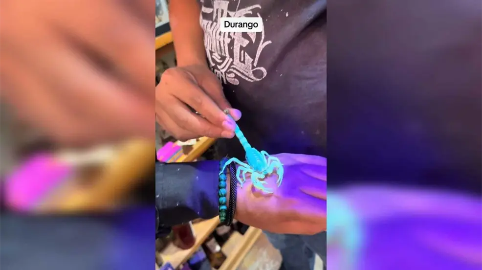El comerciante en cuestión, invitó a pasar a los turistas a que observarán la pecera donde mantienen cautivos a los alacranes, después tomó uno para mostrarles la manera en la que se agarran para evitar ser picado por el arácnido, seguido de mostrar como es que se ven con luz ultravioleta.