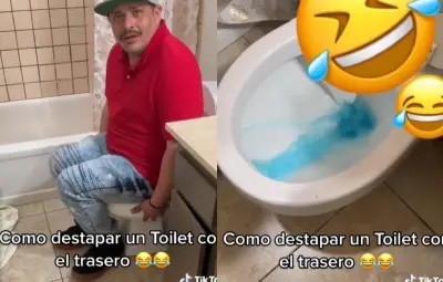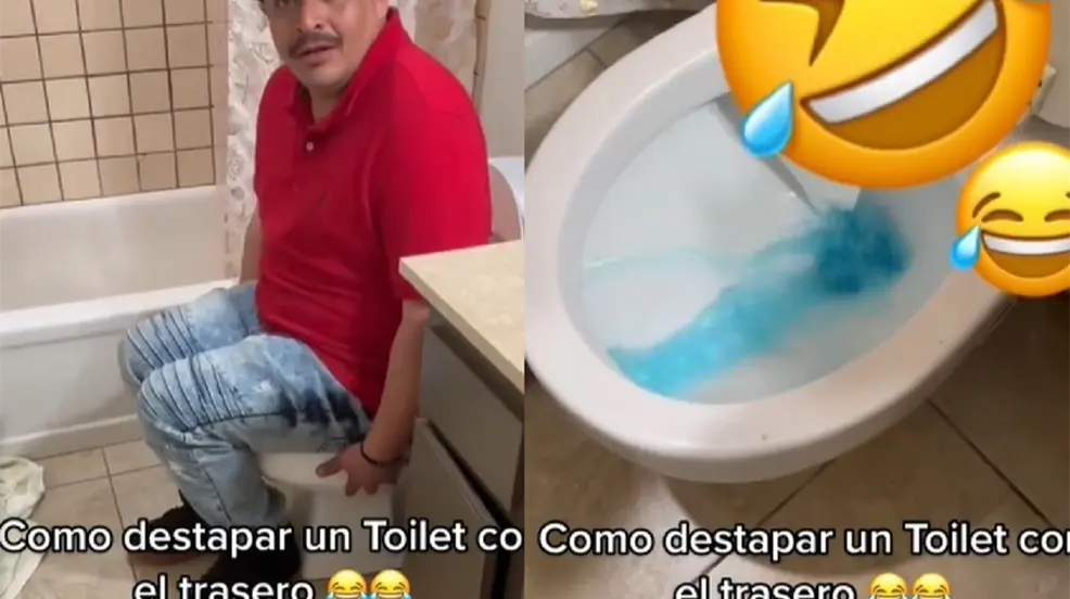 Un hombre demostró que se puede destapar la taza del baño con el trasero en una emergencia o en caso de no contar con las herramientas adecuadas al instante.