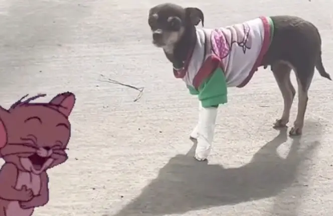 Sin embargo, algo ocurre cuando se da cuenta de que su dueña la está viendo y es en este momento en que la perrita recuerda que algo le duele y levanta la patita derecha para demostrarles que aún se le dificulta caminar.