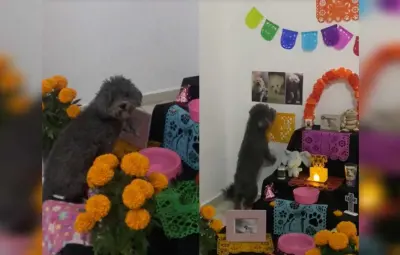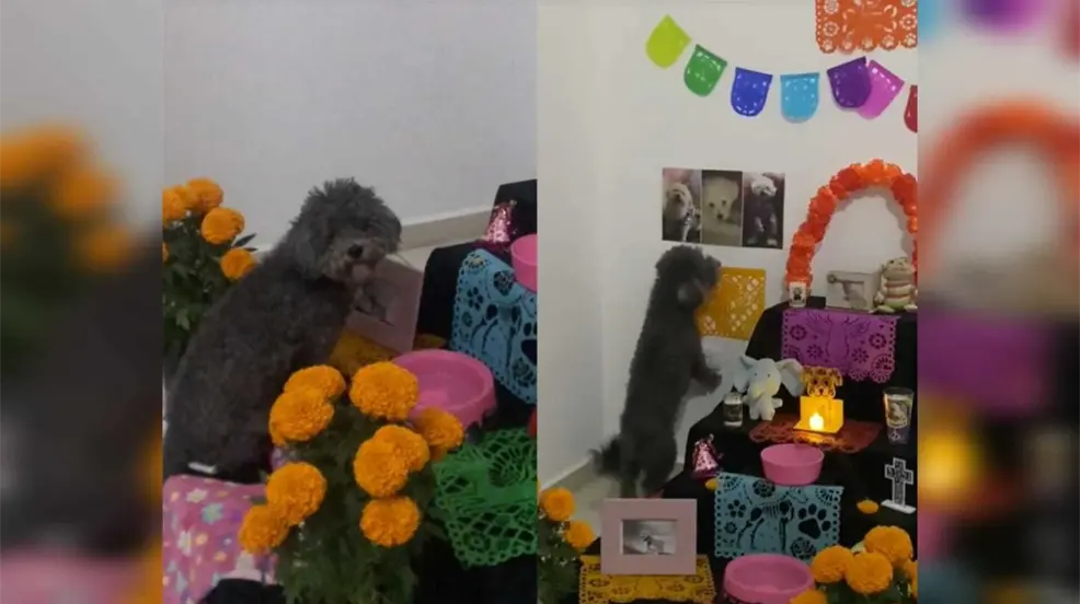 A través de TikTok se viralizó un video por la tierna reacción de un perrito frente al altar de muertos dedicado a su mamá, no se resistió y se acercó a las fotografías.