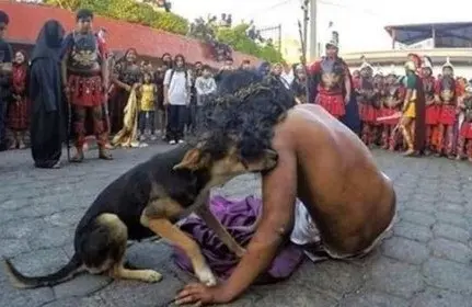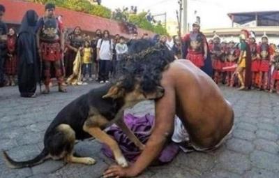 Perro consuela a intérprete de Jesús en pleno Viacrusis