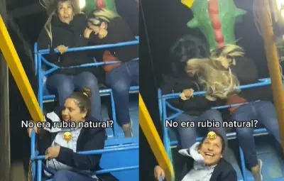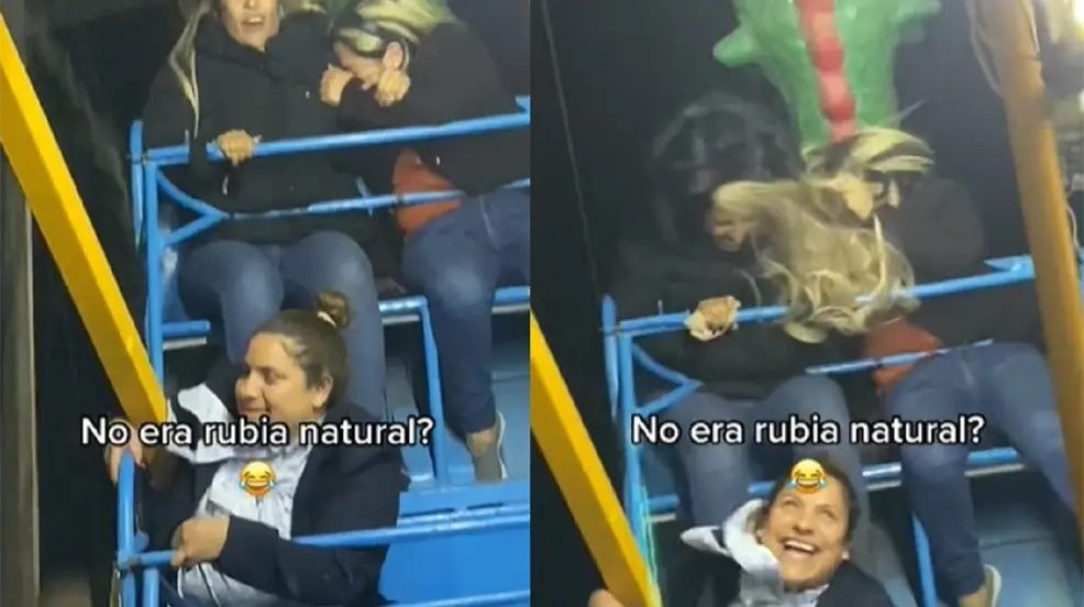 Una mujer que se subió al juego mecánico del Dragón nunca imaginó que además de experimentar adrenalina iba a perder su peluca rubia ante la mirada de los asistentes a una feria.