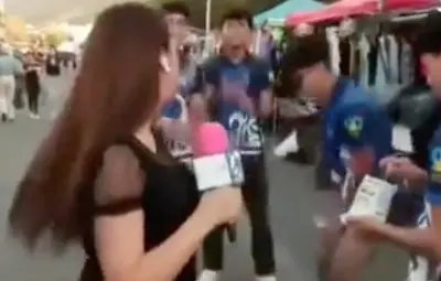Al hablar con ellos, estos destacaron ser fanáticos del club Tigres así como degustar de elotes, cuando de la nada, uno de ellos aprovechó que la cámara los vio para jugarle una broma pesada a su amigo.Justo cuando la reportera se despedía, uno de ellos le bajó a su compañero los pantalones y la misma Martínez presencio todo, y a pesar que la víctima de la broma intentó subir los pantalones, la reportera no pudo evitar reír.