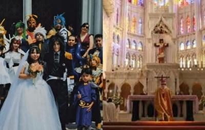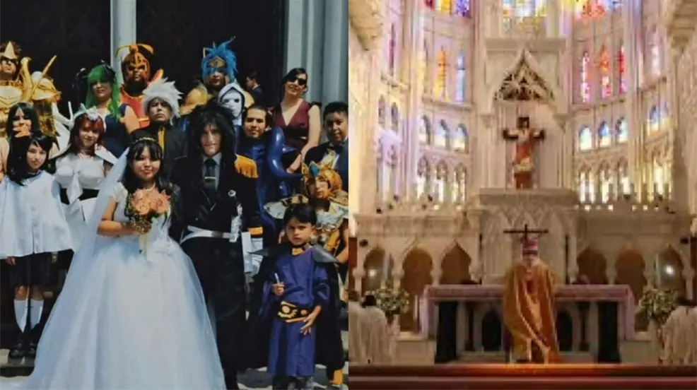 El evento, que se llevó a cabo la semana pasada, ha causado revuelo tanto por el fanatismo de la pareja como por la reacción de la Iglesia. En los clips, se observa cómo varios de los asistentes decidieron prescindir del tradicional traje o vestido de gala para lucir armaduras y trajes inspirados en los personajes del anime.