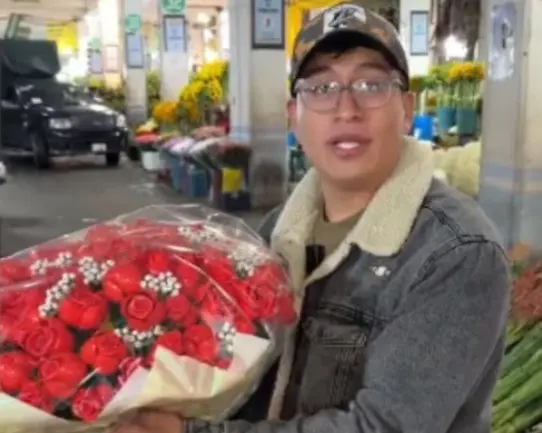 El Crilo no solo se conformó que con ensamblar las piezas en casa; todo para darle todavía un toque más especial, decidió ir a uno de los mercados más emblemáticos de flores en CDMX, para que un florista profesional se encargara del empaque y presentación final del ramo.