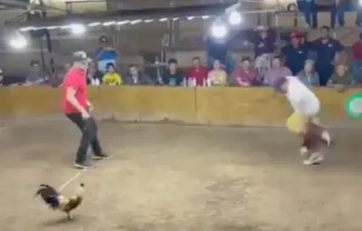 Un gallo de pelea se lanza a navajazos contra su entrenador y lo hiere en su pierna.