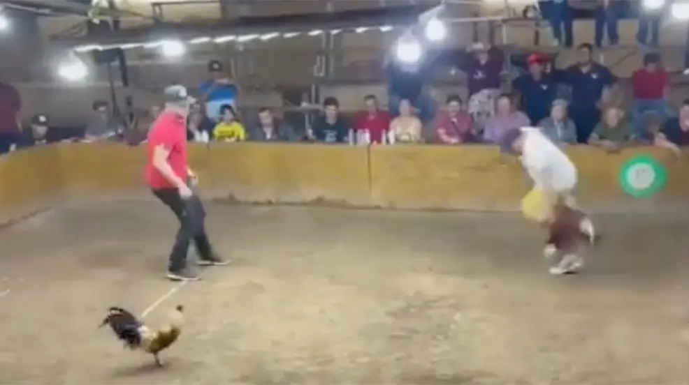En un video que circula en redes sociales muestra el momento en que un hombre soltó a su gallo de pelea en pleno palenque y este se le va encima en menos de un segundo.