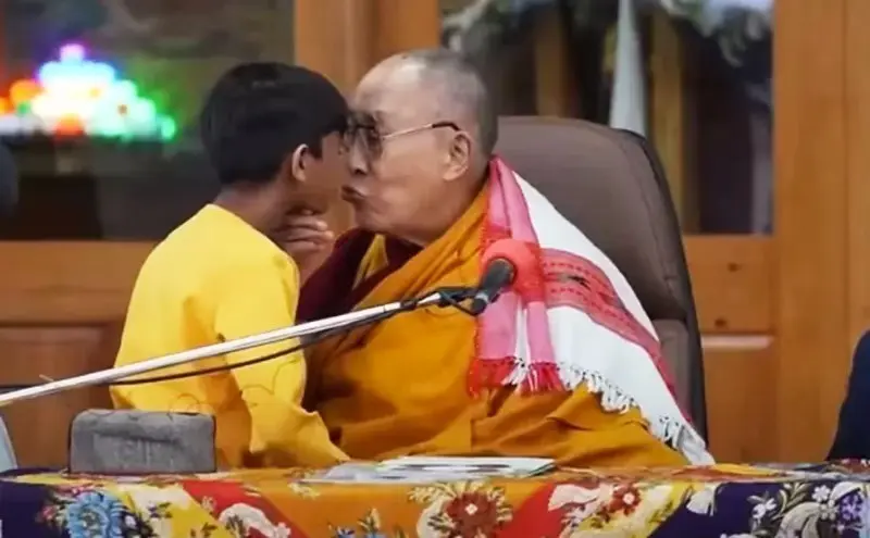 VIDEO: Dalai Lama genera polémica al besar a un niño en la boca