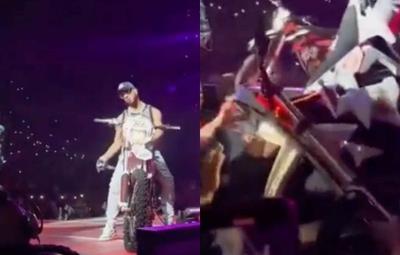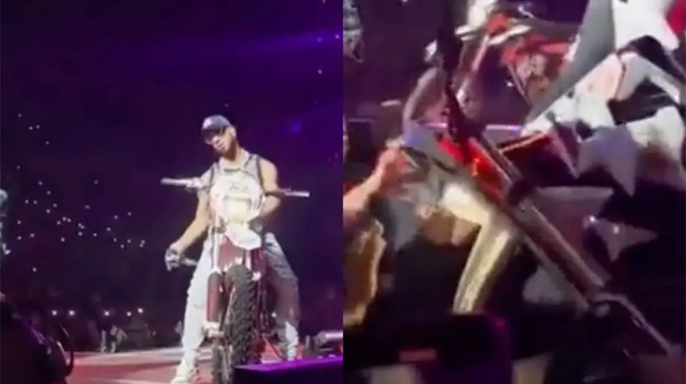 Por error, el rapero Anuel AA arrancó su moto en pleno concierto y la misma cayó al público; el cantante siguió como si nada.