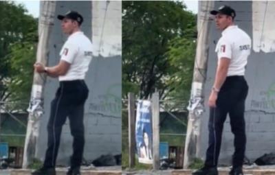 La apariencia del oficial llamó la atención de quién lo grababa y los internautas preguntaron sus datos.