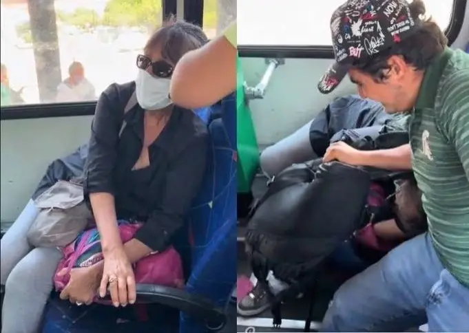 La señora ocupaba dos asientos en el transporte público, y casi tira al suelo a un hombre que usaba un bastón.