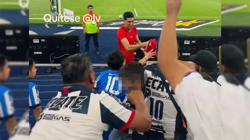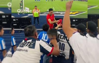 Un aficionado de Rayados jaló a un menor de edad con el objetivo de arrebatarle la oportunidad de quedarse con la playera regalada por el portero Esteban Andrada.