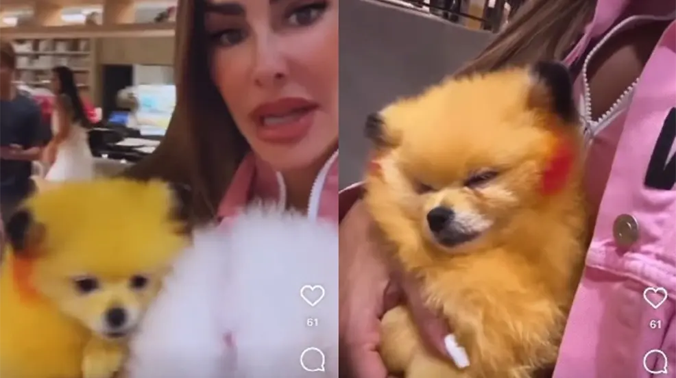 Tunden a Ninel Conde por exhibir perrito Pomerania pintado como Pikachu