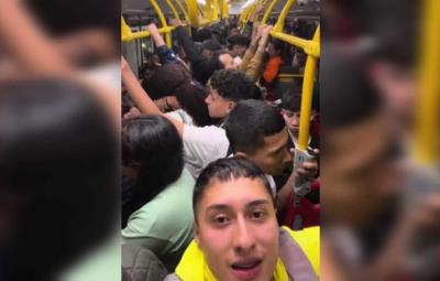 El joven identificado como Bejarano compartió un video en TikTok donde hace un anuncio en medio del pasillo del camión que va abarrotado de personas.
