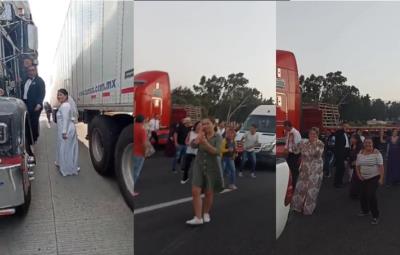 VIDEO: Arman novios baile en bloqueo de la carretera México-Puebla