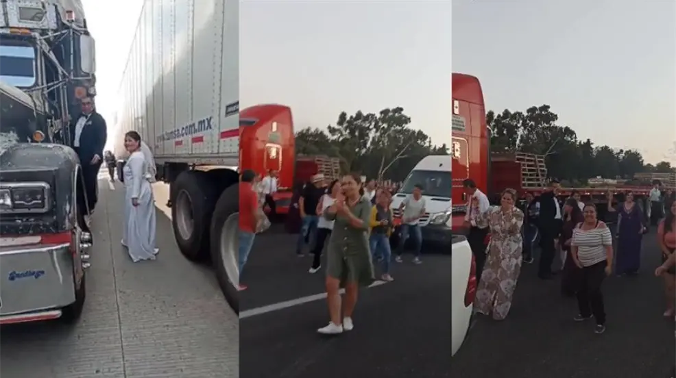MÉXICO.- El pasado viernes 9 de junio, la autopista México-Puebla fue bloqueada por alrededor de 10 horas debido a un accidente y manifestantes de la población de Santa Rita Tlahuapan. Sin embargo, esto no impidió que una pareja de novios aprovechara el momento para celebrar su boda improvisada en medio del bloqueo.