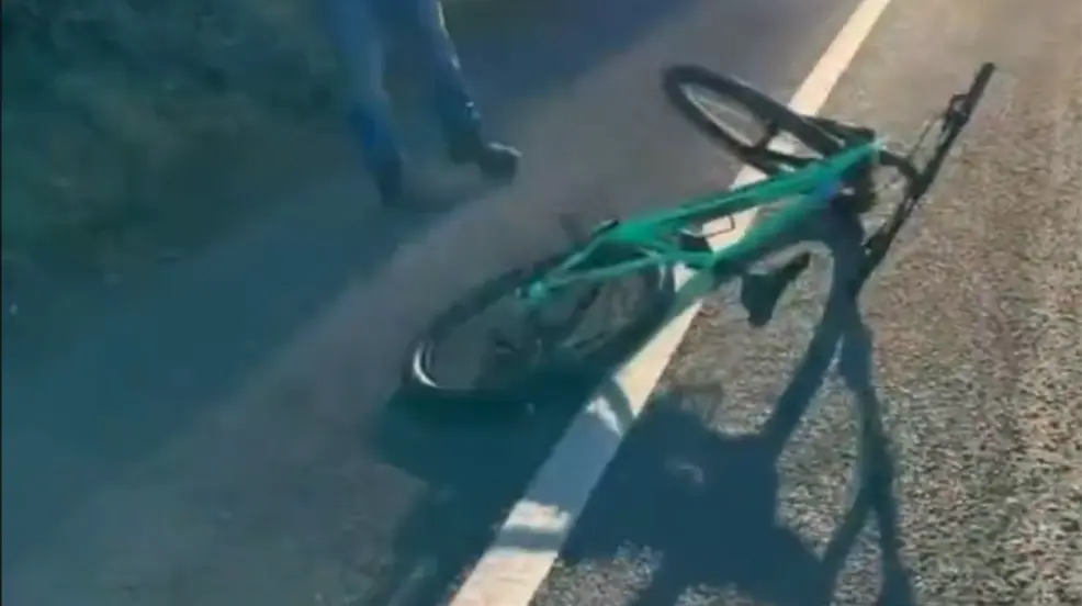 En el video, se ve la bicicleta tirada en la carretera donde viajaba Conor McGregor, tras ser atropellado por un automóvil.
