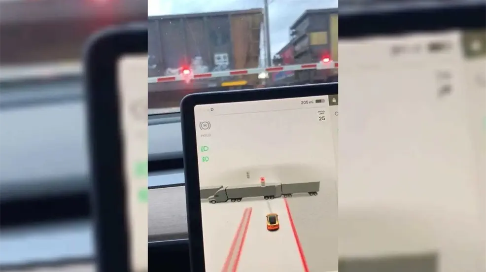 VIDEO: ¡Es un tren! Auto Tesla confunde tren con 'muchos tráilers'